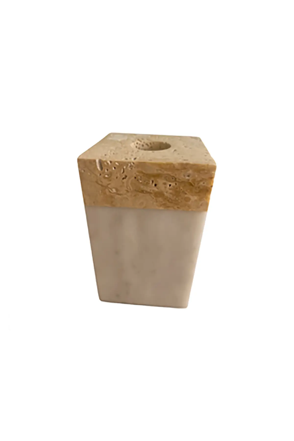 El işçiliği doğal mermer ve traverten taşıyla üretilmiştir. Hem dekoratif bir parça hem de kullanım amacıyla öne çıkan bir üründür. Ürünün çapı 9 cm yüksekliği ise 16 cm’dir. Sunulan ürün size özeldir ve eşsizdir. Doğal mermer/travertenden üretildiği için renk ve damarlarda farklılıklar olabilir. Ö zel günlerde sevdiklerinize iyi bir hediye alternatifi olacaktır.