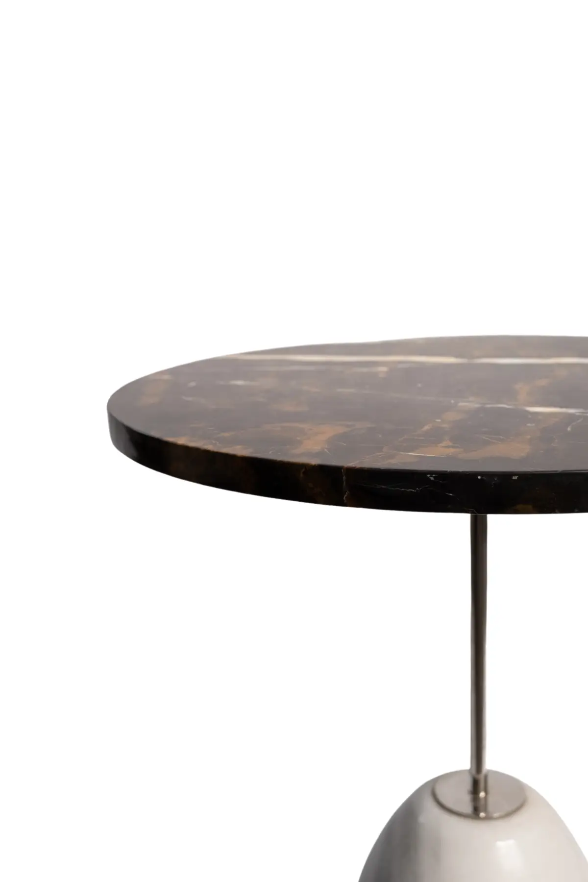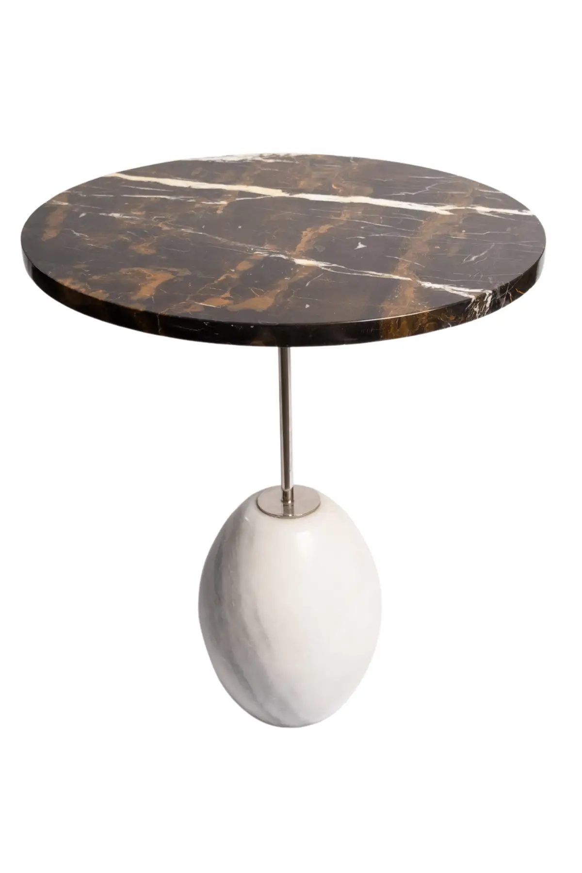 Bu sehpa, oval mermer tabla üzerinde yer alan metal torna ayaklarıyla modern bir görünüm sunar. Doğal mermerin benzersiz desenleri, her sehpayı özgün kılar ve evinize doğal bir zarafet katarken, metal ayaklar da sağlamlık ve dengeli duruş sağlar.
